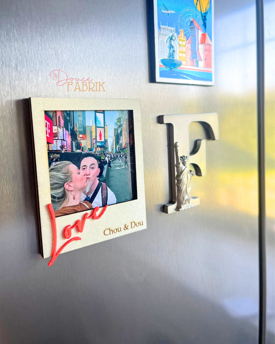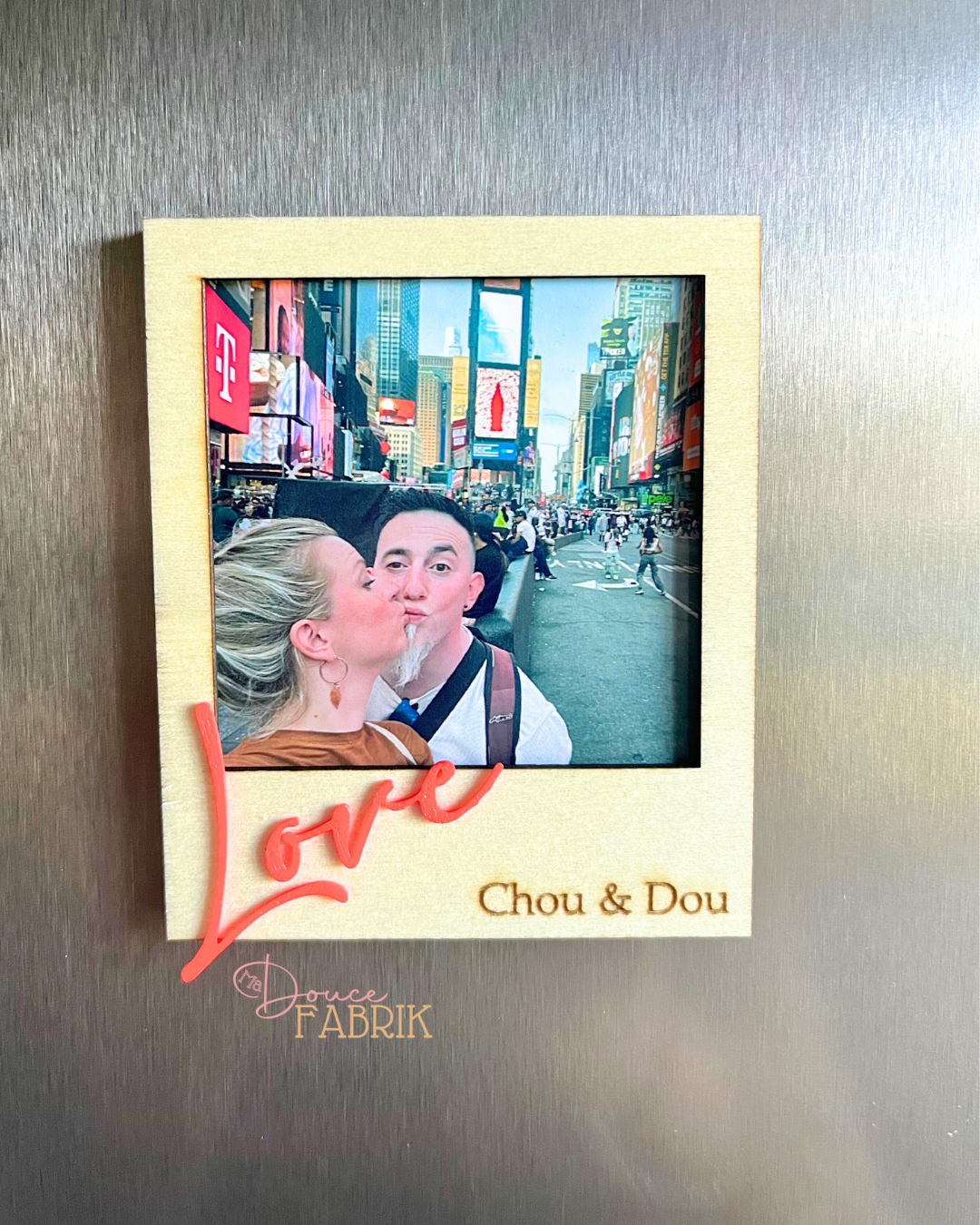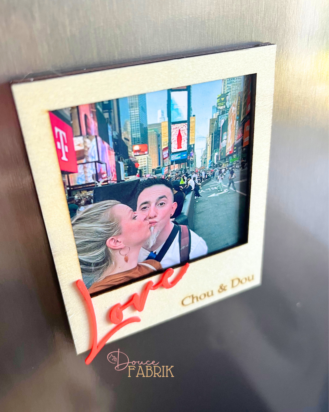 Magnet Photo en Bois Personnalisé « Love » – Style Polaroid & Impression 3D