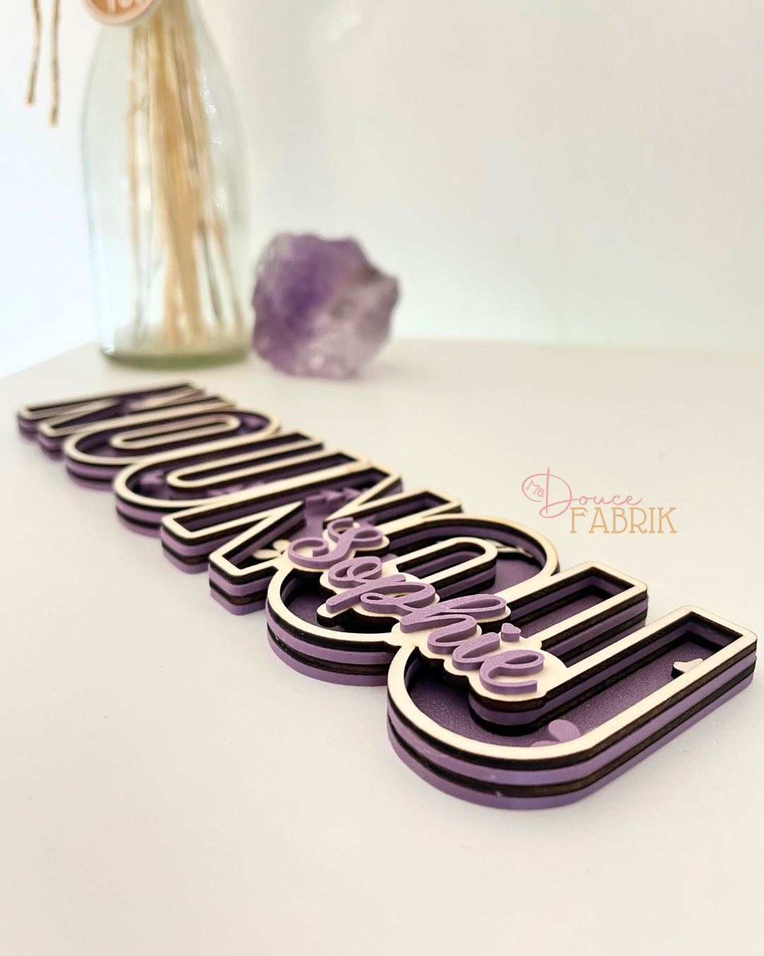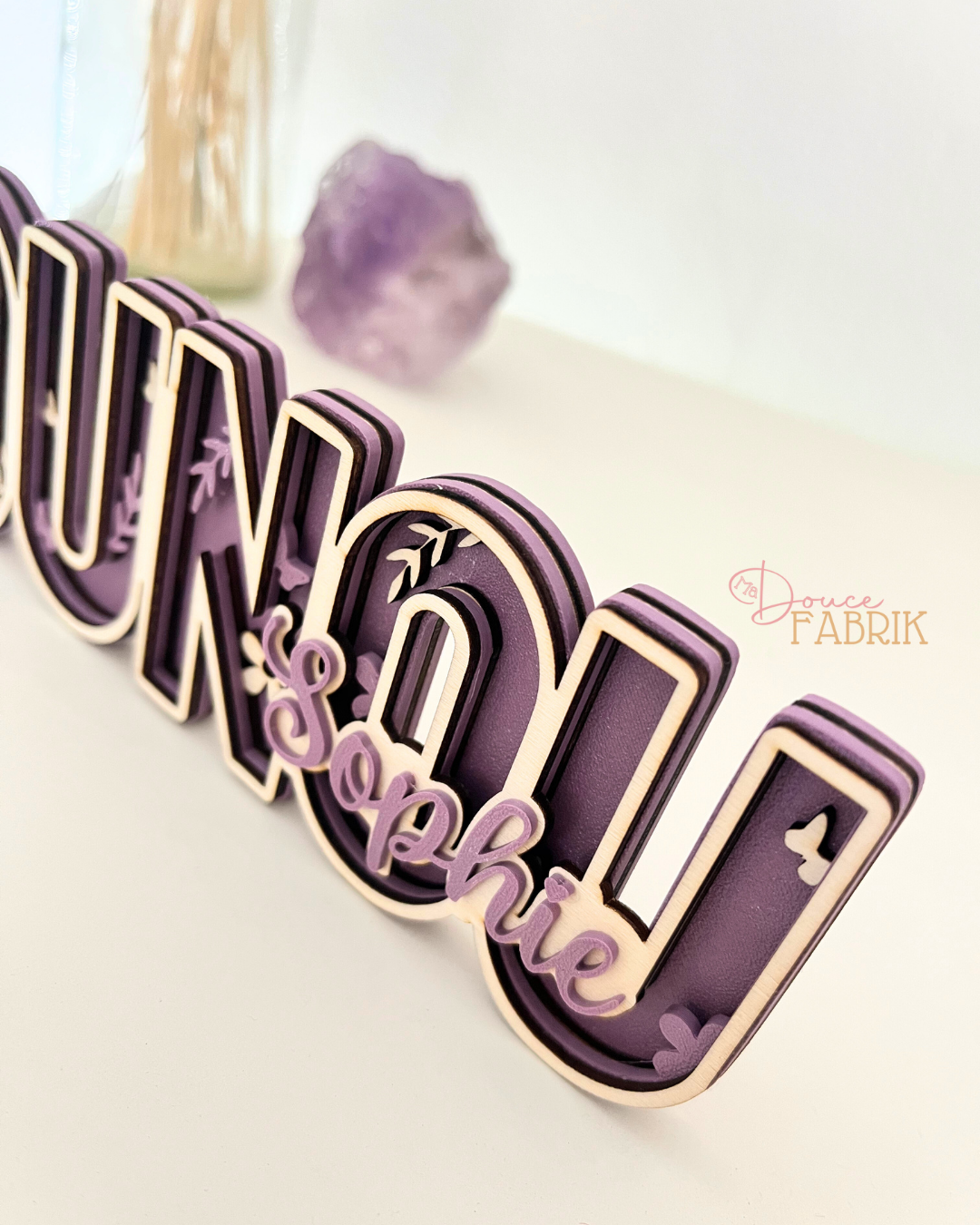 Découvrez notre nouvelle gamme de plaques nominatives en relief, une création qui allie artisanat traditionnel et technologie durable. Grâce à une technique innovante superposant la noblesse du bois et la précision de l’impression 3D en PLA (un matériau biosourcé issu d’amidon de maïs), nous créons pour vous un objet de décoration unique avec un effet de profondeur saisissant.
