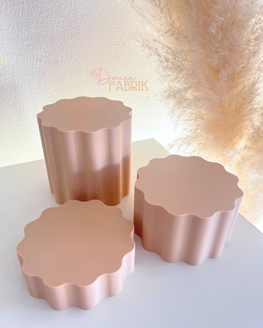 Ce lot de trois podiums aux bords ondulés est l’accessoire indispensable pour les artisans, créateurs et community managers. Conçus pour donner de la hauteur et de la perspective à vos mises en scène, ils transforment une simple photo en un visuel professionnel et esthétique.